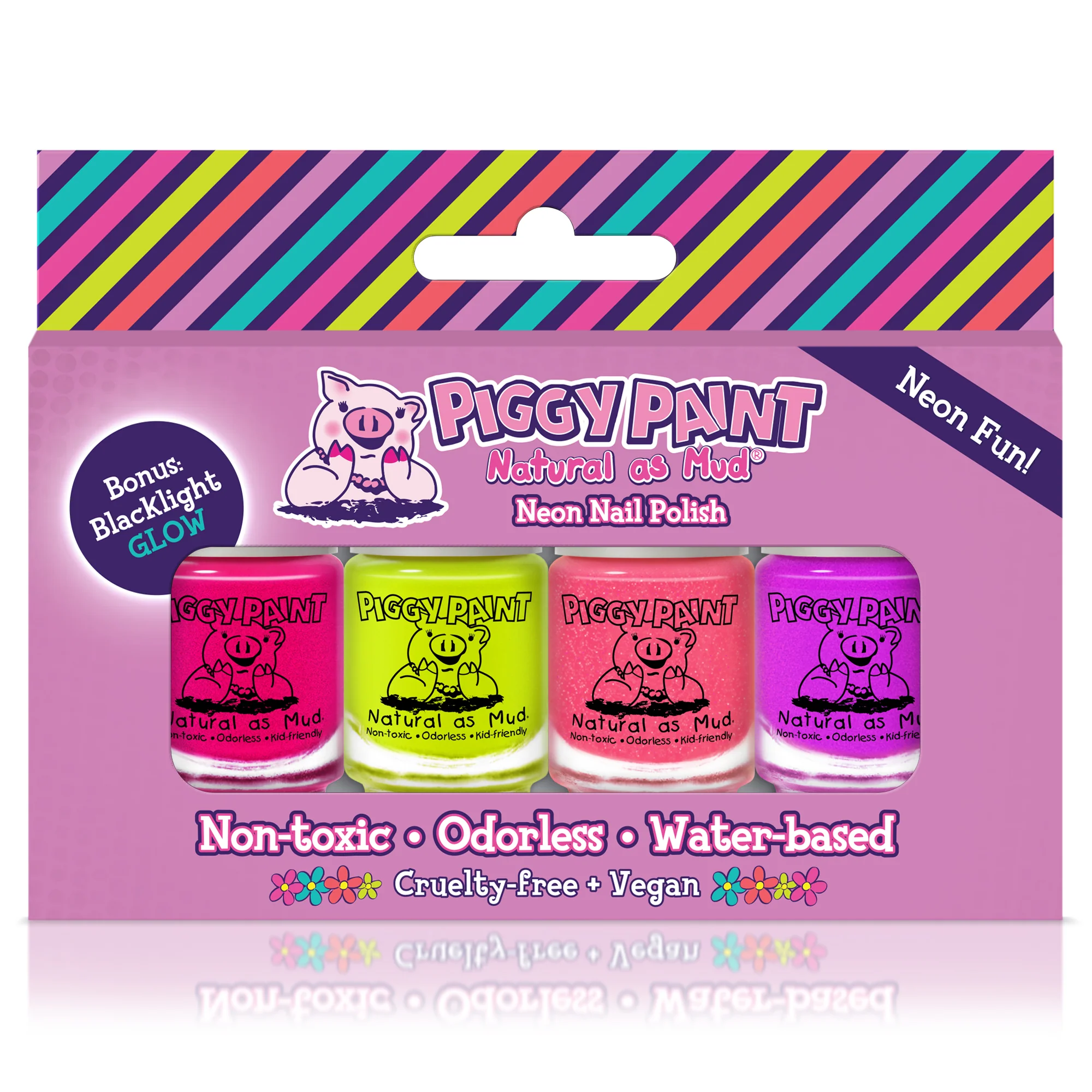Piggy Paint nail polish is Non-toxic, Virtually Odorless, and Kid-friendly! This Advanced, Water-based formula Dries Hard – and Doesn’t Wash or Peel off. Plus, it’s Safe for Babies, Toddlers, and Kids of all ages! Piggy Paint is a Premium brand that is trusted by parents (& created by a Mom!). ALL the Fun, with NO parabens, phthalates, or harsh chemicals!